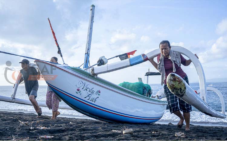 Every morning in Karangasem, Bali, the wives of fishers wait for their husbands to return from the sea, joining them to pull the jukung (small boat) ashore. This daily scene highlights the vital role women play in sustaining both family livelihoods and coastal life.
