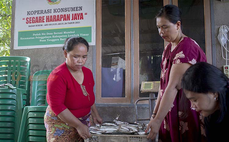 The women of Segare Harapan Jaya Cooperative in East Lombok are actively involved in managing the cooperative as a hub for collecting and marketing fishers’ catch. With great enthusiasm, they also support the promotion and sales of fishery products