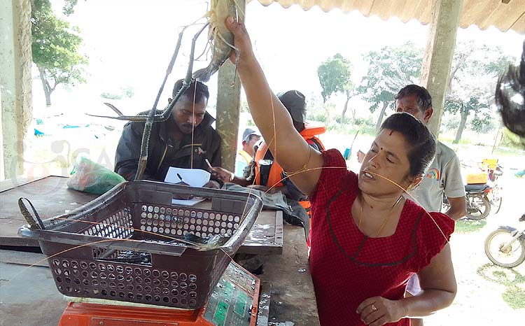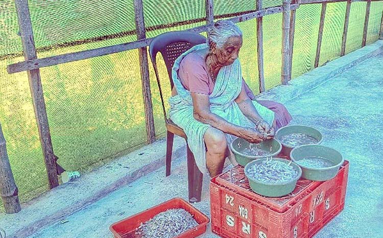 She weighs more than prawns – In the heart of Pudumurripu reservoir, she does more than measure catch—she ensures fairness, quality, and dignity. By checking, sorting, and paying for each giant prawn with care, she uplifts her fishing community and anchors their prosperity